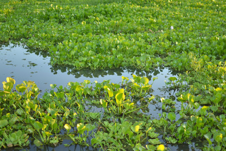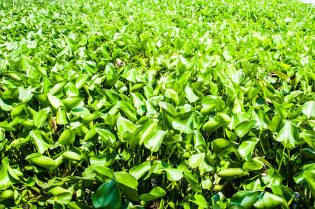 Lots of green Eichhornia crassipes aquatic plants in the lake