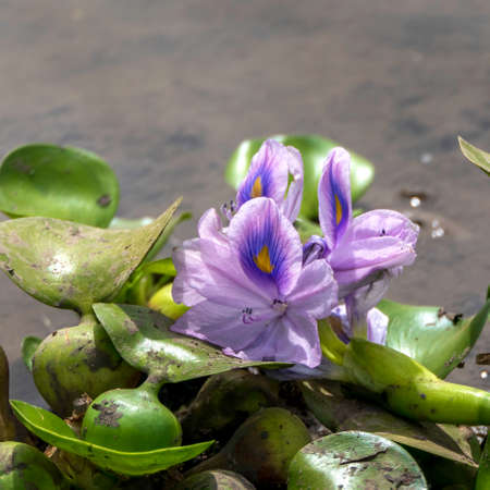 Gentle lilac eyhorniya Water hyacinth (Eichornia crassipes) in an artificial pond