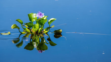 Water Hyacinth (Eichhornia crassipes) with a single purple flower
