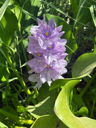Closeup of Flowering Water Hyacinth (Eichhornia crassipes)