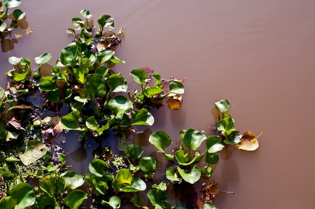 Green water hyacinth in the river.