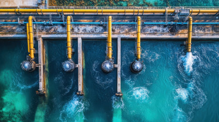 Water control system pipes and valves managing the flow. Concept Water Control Systems, Pipe Management, Valve Systems, Flow Control, Water Distribution