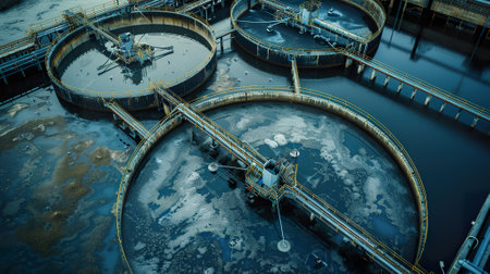 An aerial view captures the intricate details within a sewage treatment tank.