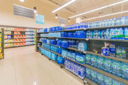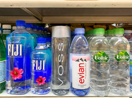 CHIANG RAI, THAILAND - NOVEMBER 21 : various brand of fresh water sold on supermarket display shelf on November 21, 2019 in Chiang Rai, Thailand.