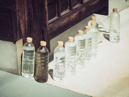 Lourdes, FRANCE, June 22, 2017 - Small bottles to take holy water from the grotto for sale near the sanctuary of Lourdes, France