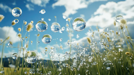 Advanced water molecule visualization in a natural setting, symbolizing sustainable agriculture practices