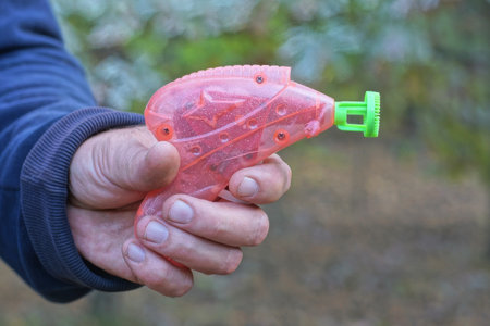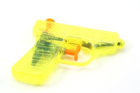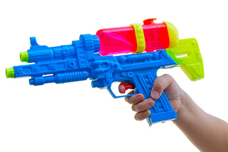 plastic toy gun for kid isolated on color background, Water gun for kid