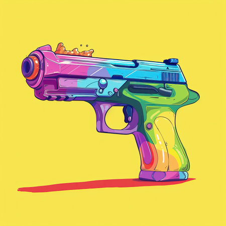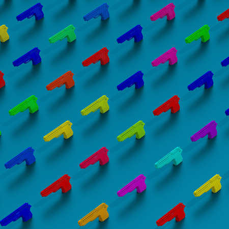 Cartoon colorful pistol on yellow background. Vector illustration of gun.