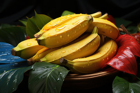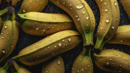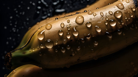 Drenched Delights: Wet Bananas on Black Background - Generative AI