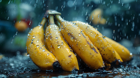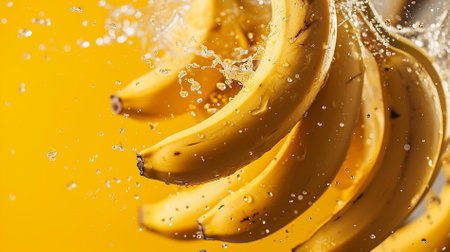 ripe bananas fruits with splash of water