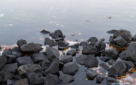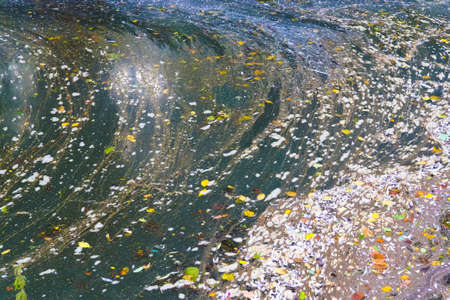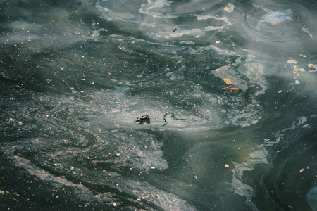 Oil and garbage pollution in the water. Selective focus with shallow depth of field.