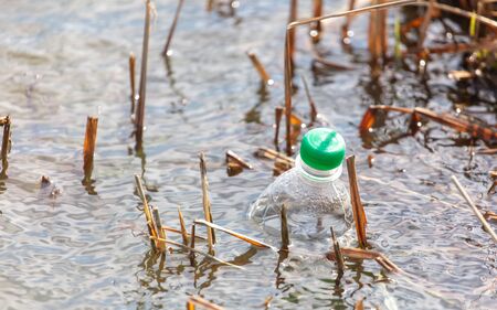 Garbage concept. Environmental pollution, plastic bottle in spring water.