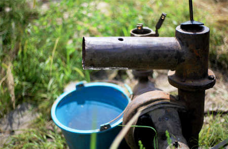 Pressurized water. Water supply hydrant in the village. Fresh water from the well.