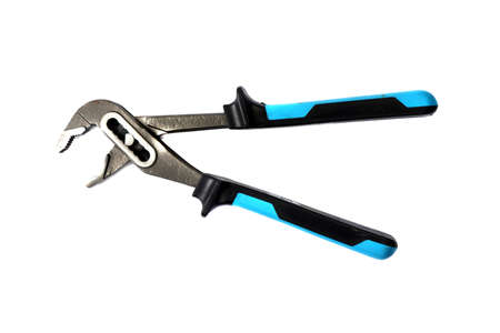 Adjustable water pump pliers tongue and groove isolated on white background. Universal wrench. Professional tool for work.