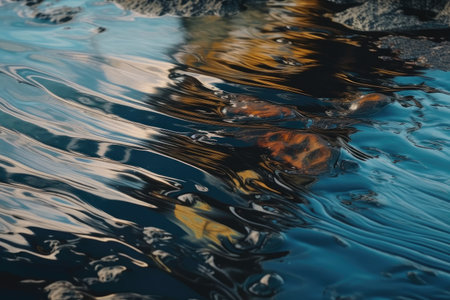 This is a stunning photo of an unusual water background that captivates the eye with its unique shapes, colors, and textures. The water seems to be alive, creating an otherworldly and mesmerizing atmosphere. Generative AI