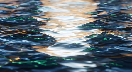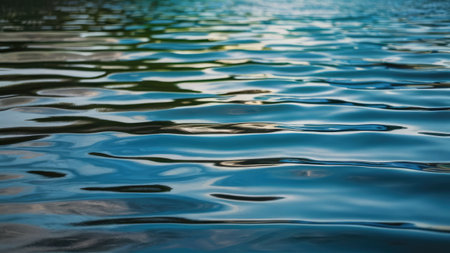 Discover a serene water surface adorned with gentle ripples and vibrant light reflections, ideal for evoking tranquility and natural beauty in imagery.