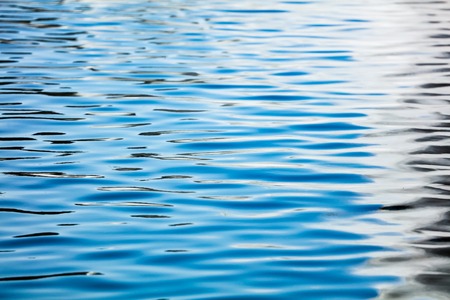 blue water surface with ripples and sunlight reflections closeup abstract background