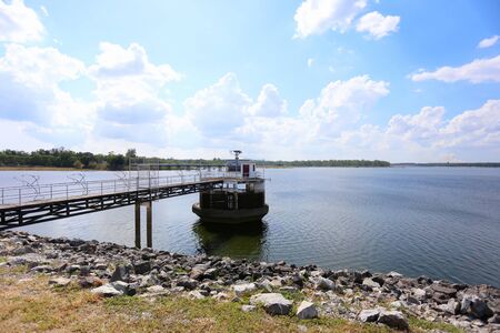 Reservoir for agriculture and industry in the dry season on the daytime view.