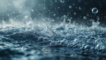 Close-up of dynamic water splashing, creating an array of bubbles and droplets in a vibrant, energetic scene.