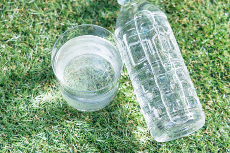 Pouring water from bottle into glass