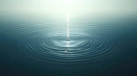 Gentle ripples expand across still water, reflecting soft light while creating a soothing atmosphere.