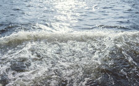 Waves on the surface of the lake. Water surface background.