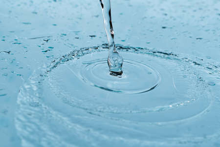 water stream with splash drops, blue background