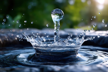 Close-up image capturing the dynamic splash of a water droplet hitting a still water surface