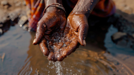 Hand Holding Water: Representing the water crisis in India, highlighting the global issue of water scarcity