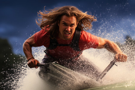 wakeboarder in action, with a spray of water around him, created with generative ai