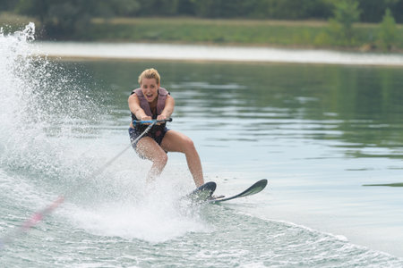 young woman water skiing on a sea