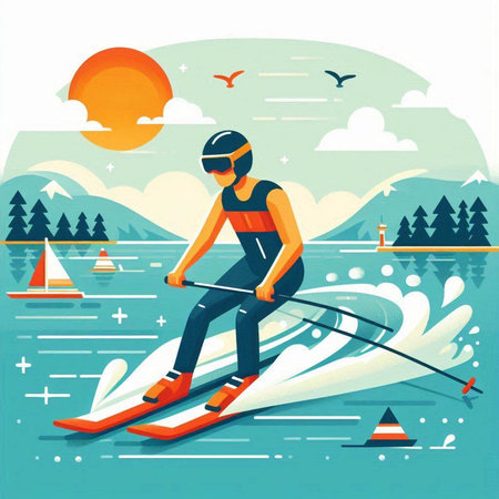 Vector illustration of a skier on the background of the water.
