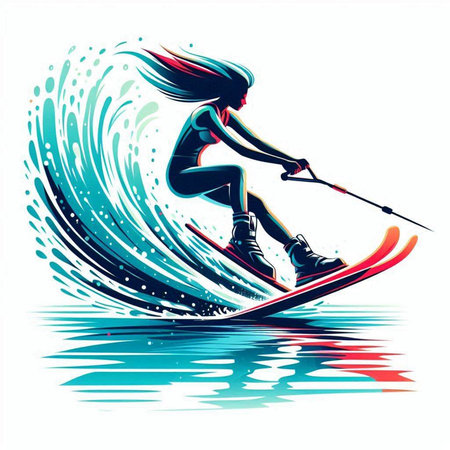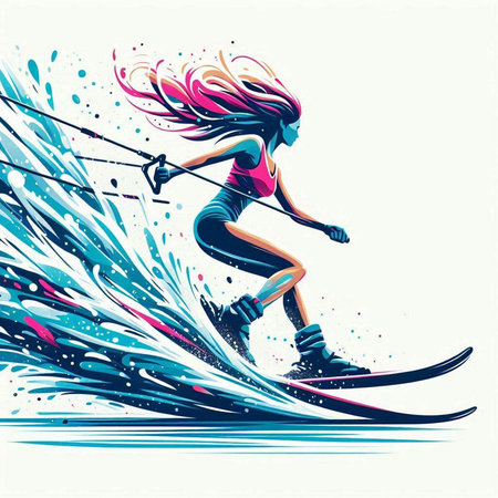 girl skier on a surfboard in the water, vector illustration