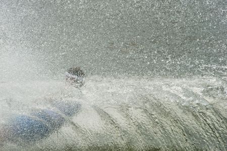 A big water splash created by a ski competitor.