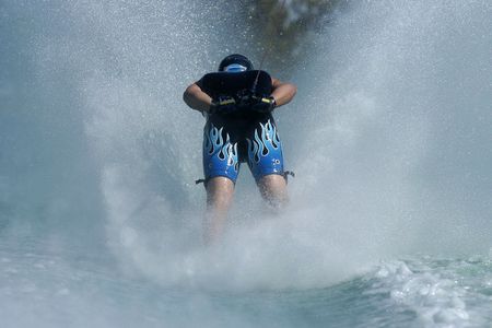 Water skiier going very fast on Mono ski in Sea