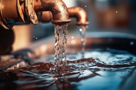 Water flow out from pipe by pump supply. Generative Ai