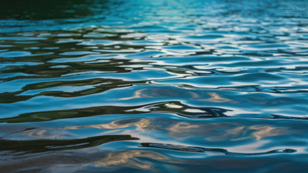 This image showcases a close-up view of a water surface with gentle waves. The cool-toned colors and the play of light create a dynamic texture. The composition suggests an outdoor environment, possibly under daylight conditions. It's suitable for various commercial uses, including artistic designs or illustrative purposes.