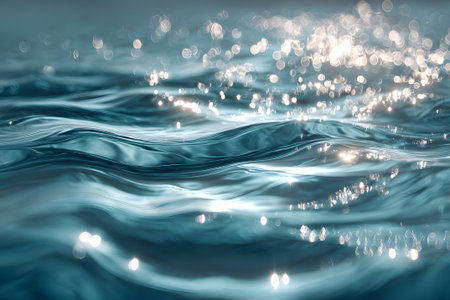 This stunning image captures gentle waves reflecting soft light, creating a tranquil atmosphere filled with sparkling highlights and soothing textures.