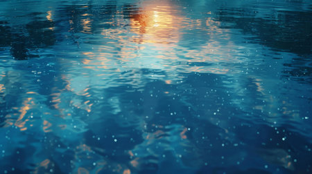 This captivating image showcases the intricate details of a water surface illuminated by soft light, creating an enchanting bokeh effect in soothing blue tones, perfect for various artistic projects.