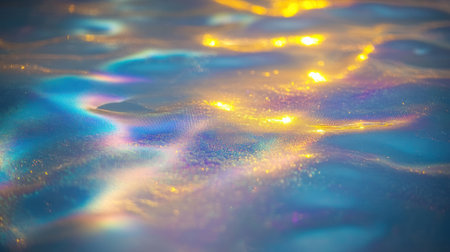 Sunlight reflects on calm ocean waves, creating a mesmerizing display of vibrant colors and gentle movement.