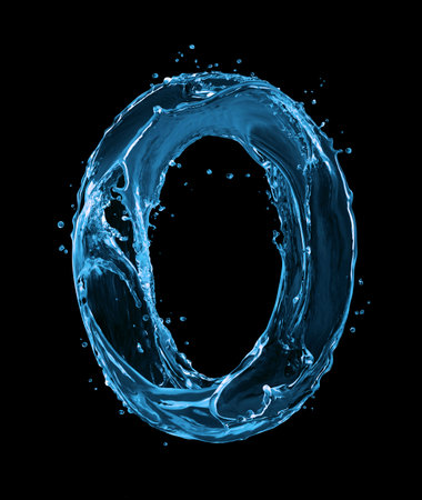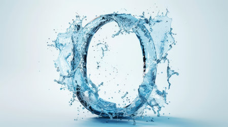 Capital letter O made of blue water splashes or ice on light background. Scrapbook activity. Generative AI.