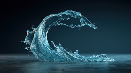 A captivating image of a realistic water wave creating dynamic motion against a dark backdrop, ideal for artistic and creative projects.