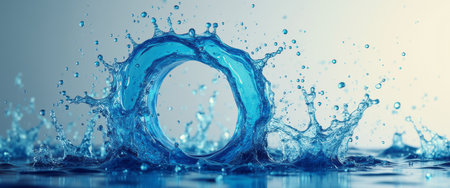 A vivid water splash frozen in dynamic motion, creating a refreshing and energetic visual effect with blue tones.