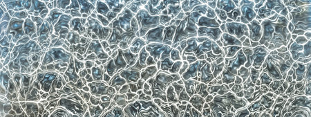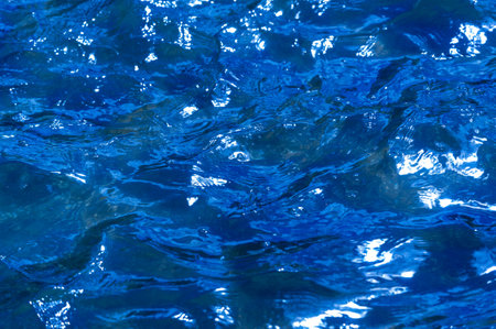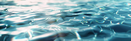 Close-up of transparent blue water with soft ripples and shining patterns, creating a peaceful and serene atmosphere. A perfect background texture.