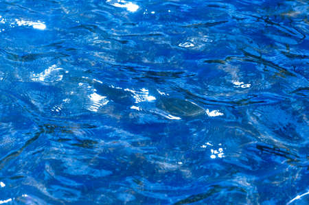 Blue swimming pool water with ripples and rays of light. Abstract background