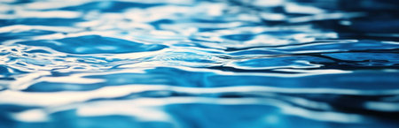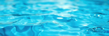 Blue water in a swimming pool, close-up of ripples and reflections on the surface, high resolution, high detail, high quality. --ar 31:10 --v 6.1 Job ID: d4fa6438-4ff2-41de-a44c-105e83112848