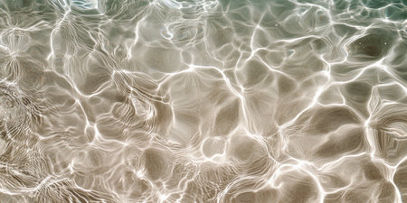 Crystal-clear water dances in the sunlight, creating mesmerizing ripples over soft sand on a tranquil beach. This serene moment invites relaxation and reflection by the shore.