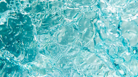 Abstract close-up of turquoise water with bubbles and ripples. Concept of freshness, fluidity, and purity of water. Background. Texture. Copy space.
