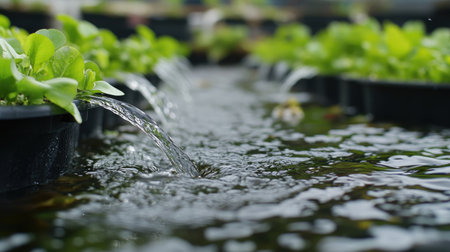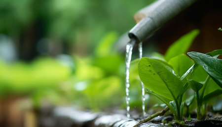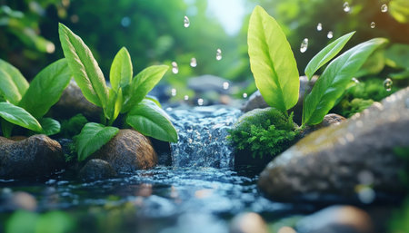 macro view of green plants growing in water fountain, created with generative ai