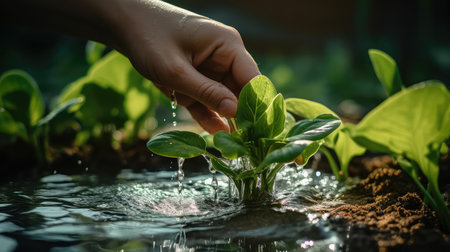 nurture hand water plant illustration growth care, nature gardening, sunlight droplets nurture hand water plant